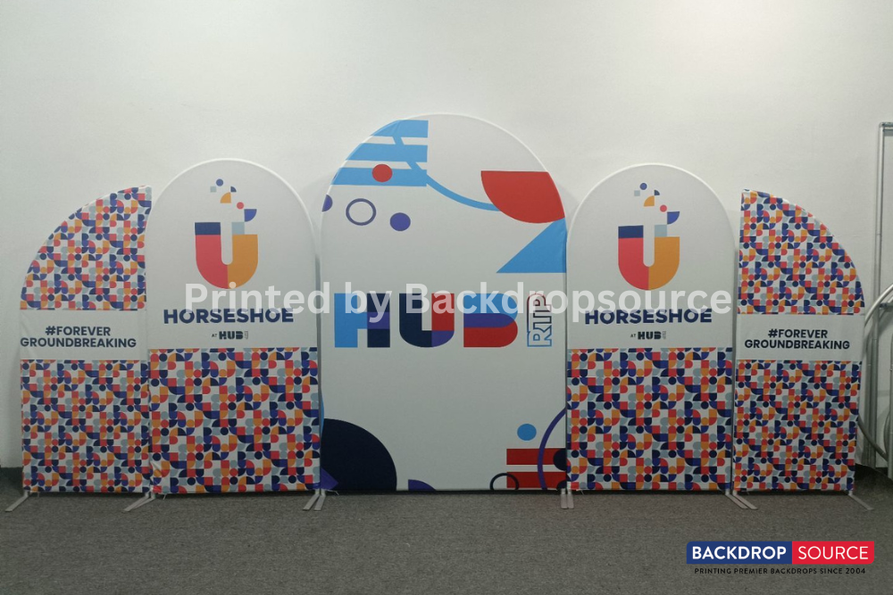 Our custom backdrop stand is an ideal choice for themed weddings, themed birthday parties, and many other occasions. This fabric backdrop makes for a beautiful event display with its unique shape. You can print a custom design and insert it into the frame, or simply use the frame and decorate it with flowers or other decorative elements to enhance its appearance.