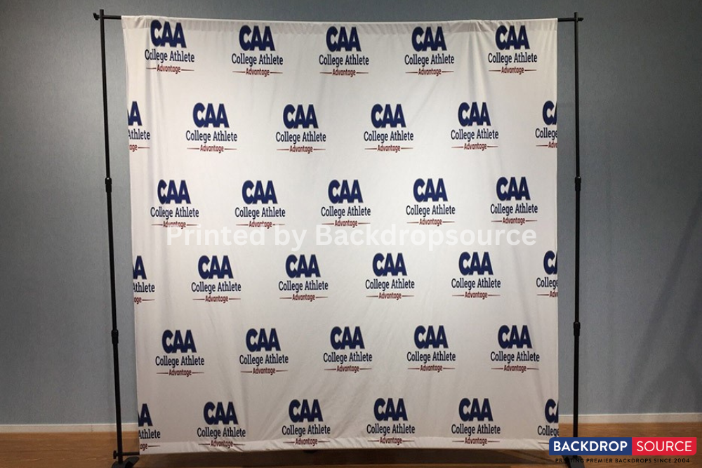 • Features repeated logos or graphics for consistent brand exposure in every photo.
