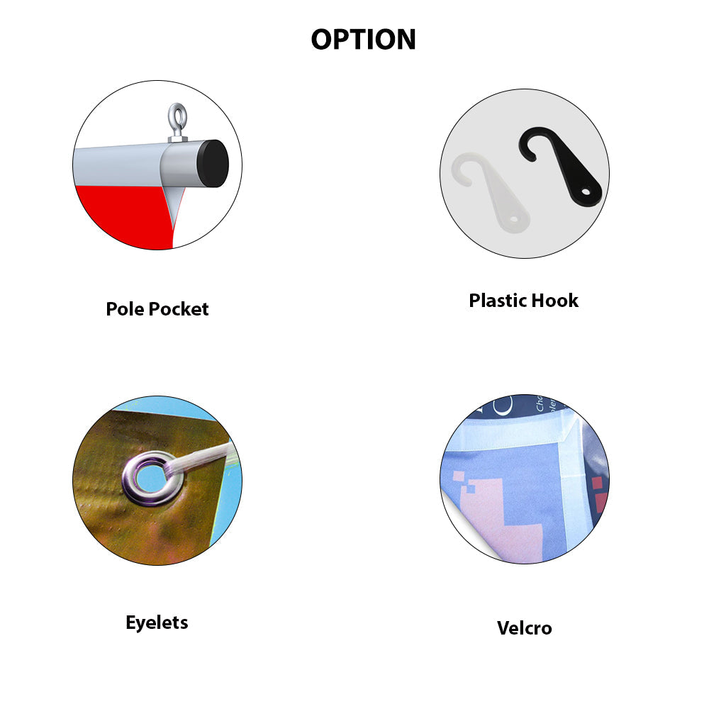 We can finish them with rod or pole pockets so you can let them fall off from the ceiling for your next event. And we can have it with eyelets to hang up indoors and outdoors. If the backdrop is your use, we can simply hem the edges so you can stretch and pin them up on the stands that we provide [Adjustable 8ft Stand, Tripod 8ft Stand and Backdrop Holder]. And we give away velcro and wind flaps just to ensure your photograph doesn?t capture a wrinkle. This way, you can have the ends secured.