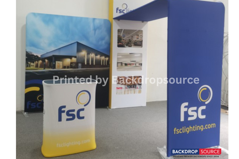Telón de fondo recto de 20 pies con kit de exhibición de arco y pared 3D