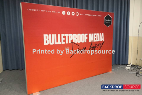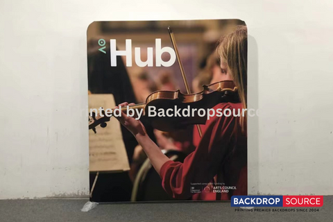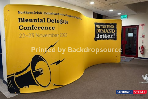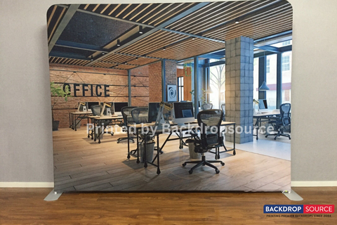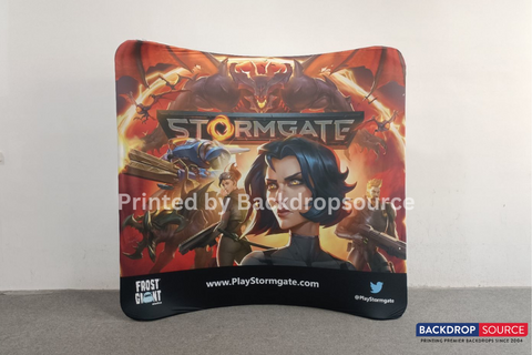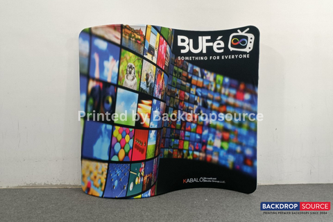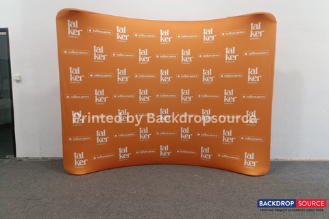 Telón de fondo de pared de medios de tela de tensión de onda en forma de S